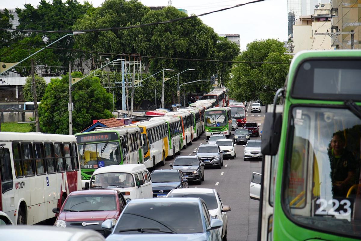 Rodoviários paralisaram a circulação de ônibus no Terminal 1, no Centro de Manaus, na tarde