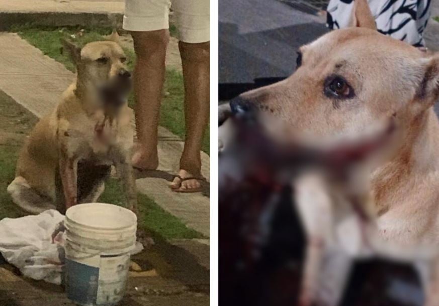 Uma cadela comunitária foi atingida por uma bomba do tipo “catolé” durante a queima de